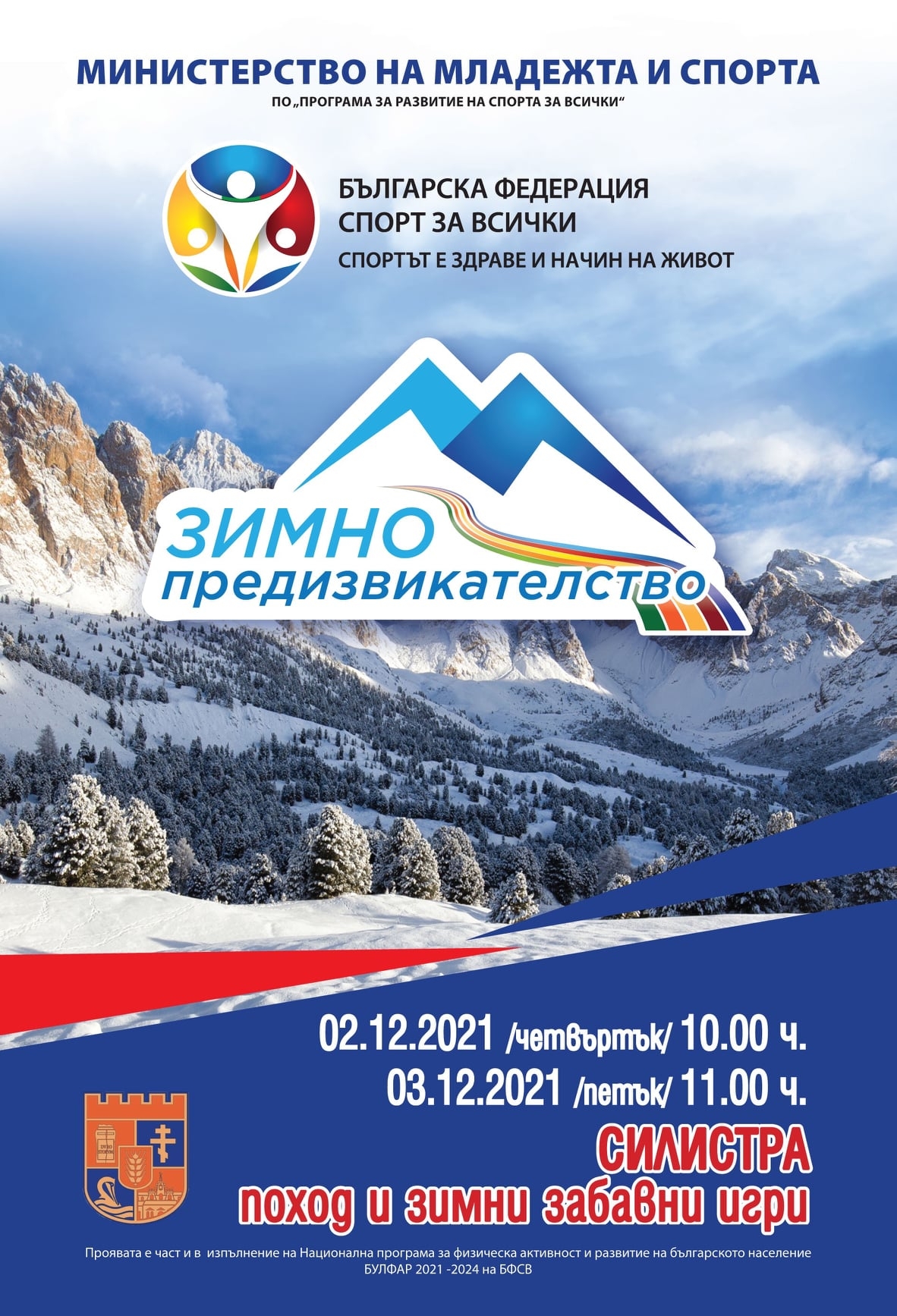 БЪЛГАРСКА ФЕДЕРАЦИЯ СПОРТ ЗА ВСИЧКИ организира съвместно с Община Силистра - Зимно предизвикателство`2021.