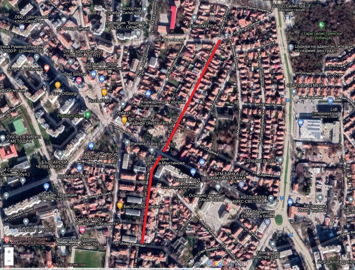 Със Заповед на кмета на Община Силистра, във връзка със съгласуван Технически проект за Временна организация и безопасност на движението (ВОБД) при изпълнение на строителни и монтажни работи по реконструкцията и доизграждане на ВиК мрежи в гр. Силистра считано от 30.11.2021 г. да бъде затворен за движение на моторни превозни средства (МПС) следния участък от уличната мрежа: