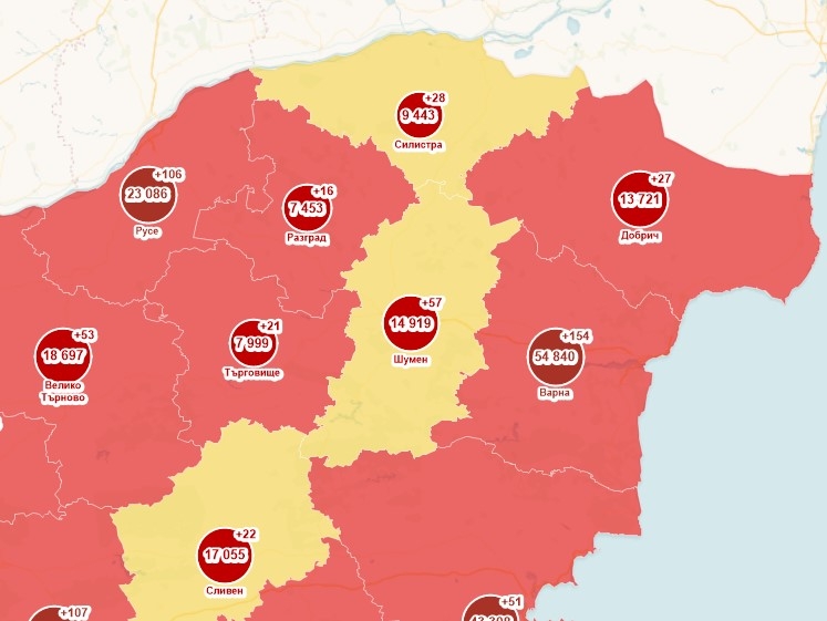 228 са новите случаи на COVID-19 в Североизточна България през изминалото денонощие. Най-много са заразените в областите Русе – 106 и Шумен 57. В Силистренско са регистирани 28, а в Търговищко 21. Най-малко са заразените в Разградско – 16 души.