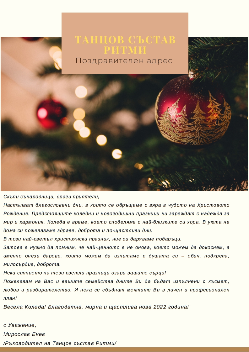 Най-младият ръководител на танцов състав "Ритми" поздрави и тази година сънародниците си за идващите празници
