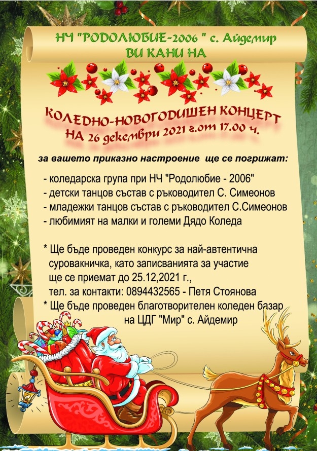 Народно читалище "Родолюбие-2006" в село Айдемир е подготвило Коледено-новогодишен концерт за жителите на най-голямото силистренско село.