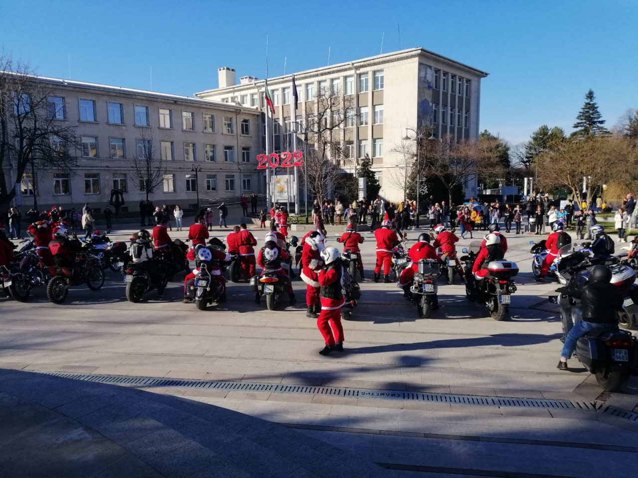 С карнавални коледни костюми мотористите минаха с мощните си машини в рамките на организирана от клуба дарителска кампания за набиране на средства за подпомагане на Центъра за комплексно обслужване на деца с увреждания и хронични заболявания.
