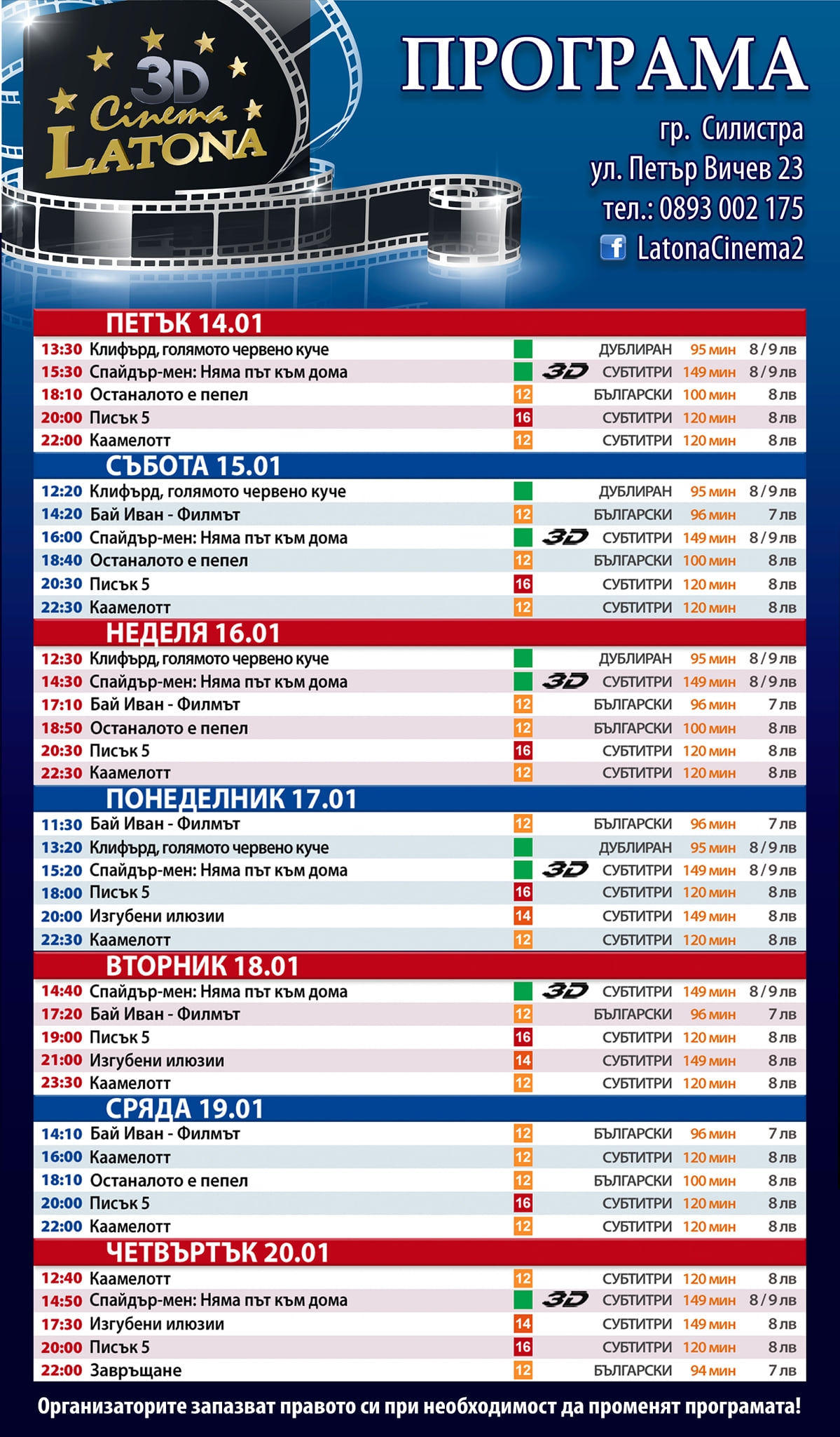 Latona Cinema Силистра: Кино програма от 14 до 20 януари