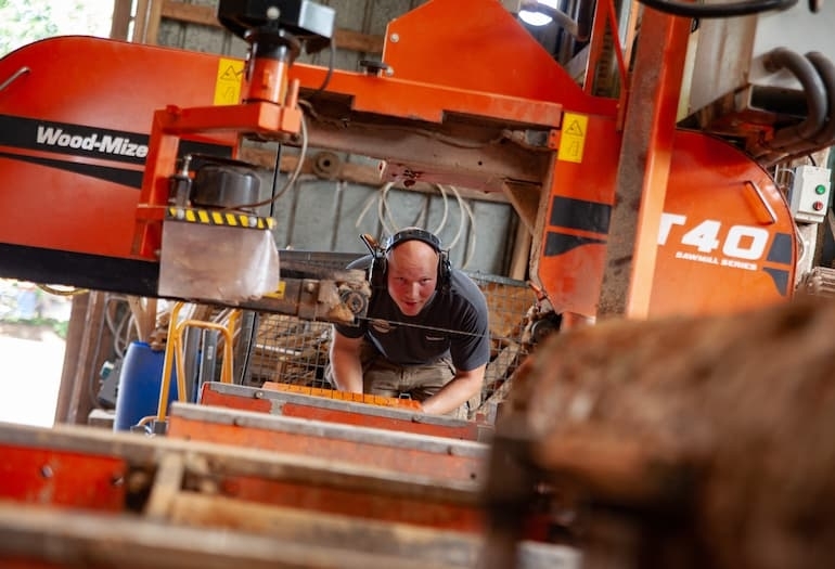 2 работници, обработка на дърво