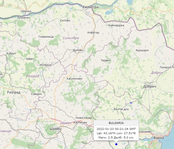 Трус от 2,5 по Рихтер на 100 км от Силистра