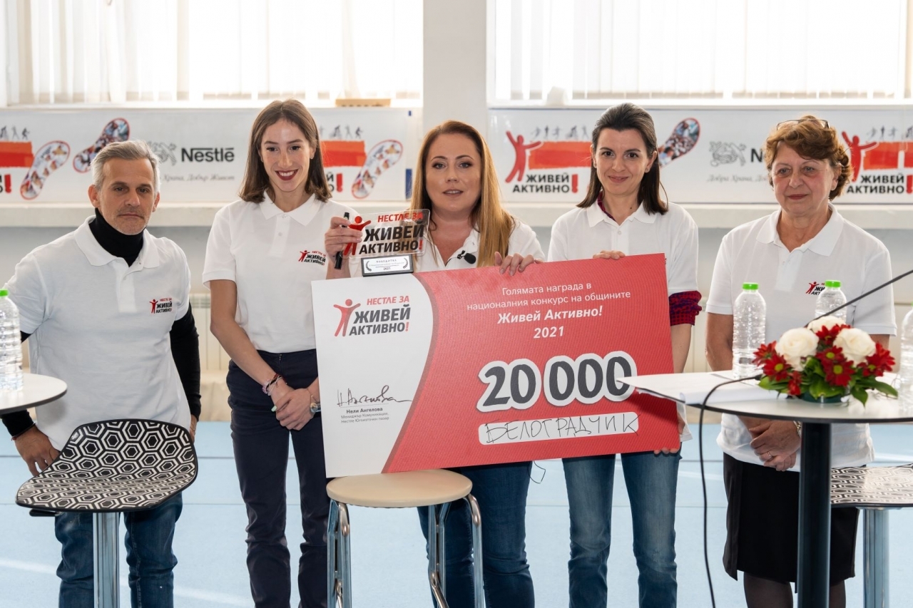 Финалът на конкурса Нестле Живей Активно! 2021 се състоя днес в столичната зала "Раковски", където в оспорвана битка между четирите общини финалисти – Ардино, Белоградчик, Димитровград и Тутракан - жури в състав олимпийските медалисти Йордан Йовчев и Симона Дянкова, Мария Яровая от НСОРБ и Мария Тодорова от Нестле България и Рада Стефанова, представител на Министерство на младежта и спорта избраха община Белоградчик за големият победител.