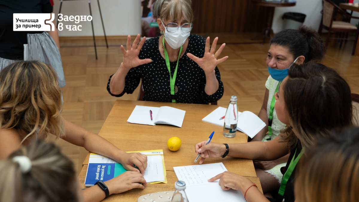Участниците в програма "Училища за пример" преминават през съвременни обучения, приложение в практиката на наученото, надграждаща подкрепа от ментор и работа в професионална общност със споделяне на опит.