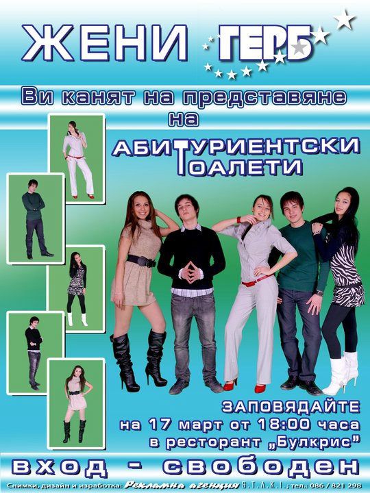 Ревю по повод предстоящите абитуриентски празници, организира силистренската структура на Жени-ГЕРБ. Проявата е насрочена за 17 март от 18,00ч. в ресторант "Булкрис". Областният ръководител на ЖГЕРБ Денка Михайлова уточни, че в ревюто ще участват повече от десет фирми, предлагащи абитуриентски облекла. От тях 6 ще представят и ежедневни и официални тоалети. Останалите – чанти, обувки, бижута и накити. Силистренски фризьори и гримьори ще демонстрират актуални прически и гримове.