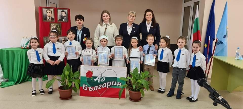 С много патос и вдъхновение децата рецитираха стихотворения за България, Трети март и великите наши революционери - Васил Левски и Христо Ботев със стихотворения написани от съвременни български автори. Децата от втора, трета и четвърта група се представиха с рецитал " Потомци сме на Ботев", "Разказвай" и "Хайдути". Журито определи и участниците, които ще представят ДГ " Мир" в областния рецитаторски конкурс: Станимир Стоянов, Давид Тотев, Хелин Левент, Джерем Джевдет и Мия Деянова Групово участие на деца от група " Лъвчета" с рецитал " Хайдути" по стихове на Христо Ботев.