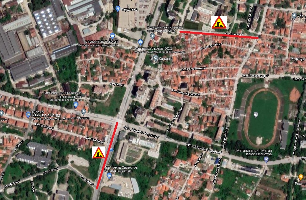 Със Заповед на кмета на Община Силистра, считано от 15.02.2022 г., заради ВиК ремонти ще бъдат затворени за движение на моторни превозни средства (МПС) следните участъци от уличната мрежа в урбанизираната територия на град Силистра: