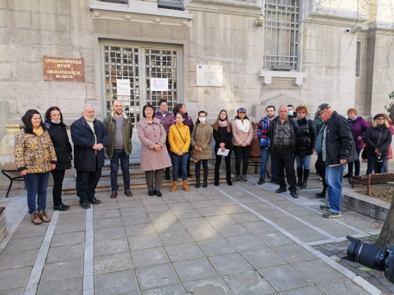 На ефективния протест днес пред сградата на РИМ-Силистра се събраха музейни работници и директорите на трите силистренски музея – Историческия, Художествената галерия и този в Сребърна.