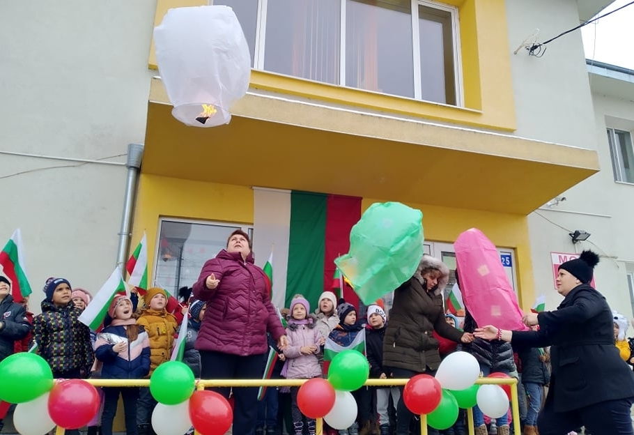 Цветовете на националния трибагреник засияха в детските ръчички, а посланието за мир полетя, чрез запалени фенери оцветени в бяло, зелено и червено - високо в небесната шир.