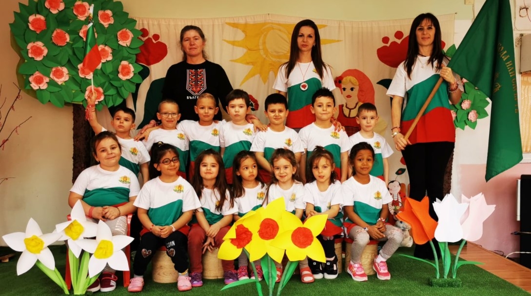 Вчера на 2 март българско хоро се изви в градината, а децата от група "Мечо Пух" научиха много факти за славната българска история и с ентусиазъм се включиха в инициативата на Сдружение "Азбукари"- "Пробуждане с хоро на Трети март".
