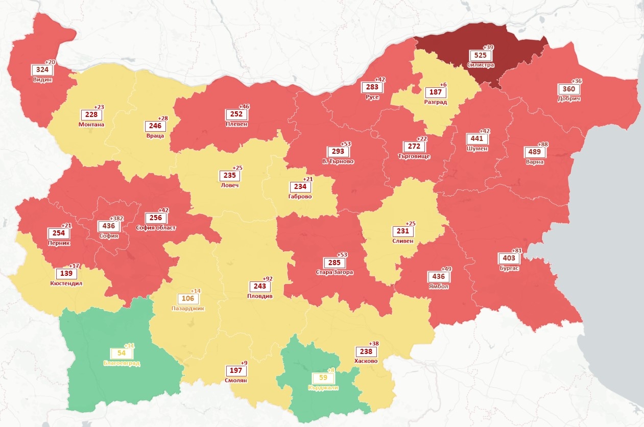 Данните от Единния информационен портал показват, че Силистра остана единствената тъмночервената ковид зона в България.