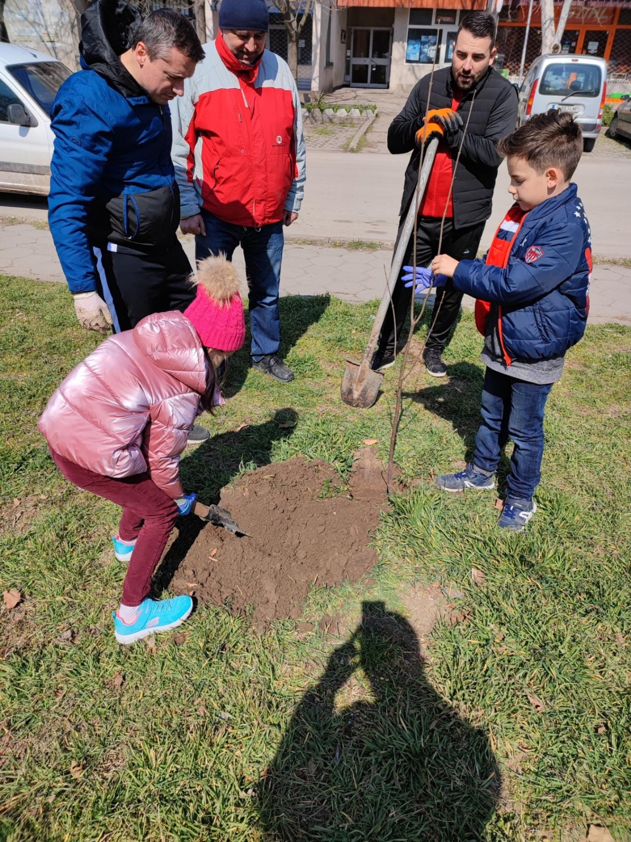 Заедно с тях бяха и децата Ема и Максим, които показаха завидно желание и добри умения, за да се справят с поставените им задачи в изкопаването, засаждането и поливането на всеки от осемте "явор"-а. Този род дърво е известен още като клен (в над 20 разновидности) и за него се знае, че от твърдата му дървесина в древността за правене на копия за ловците и за бойците.