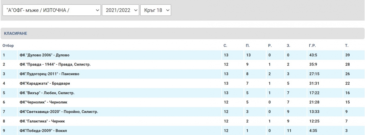 В неделя ще се играят мачове само от Източната група на областното първенство