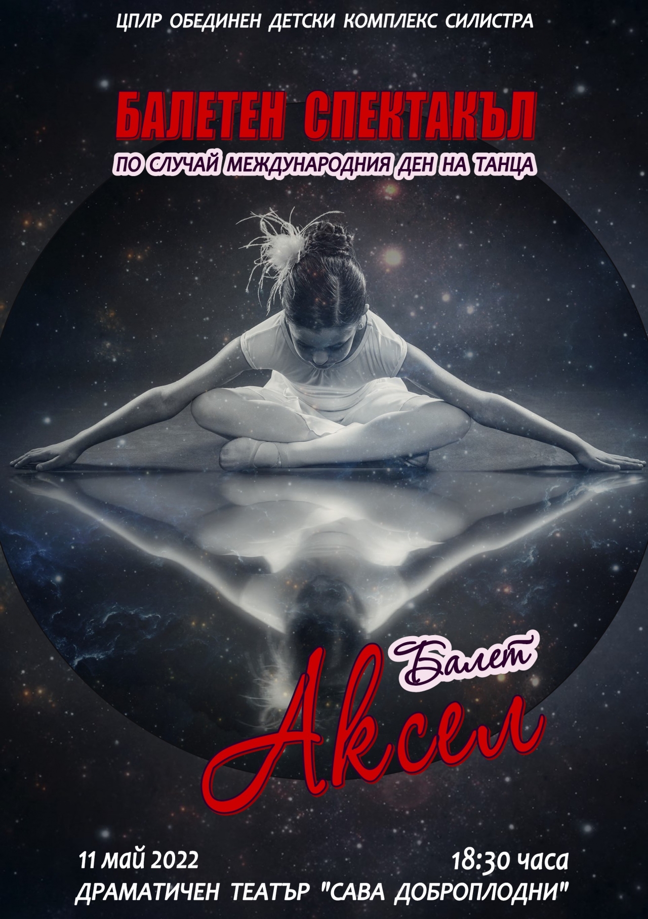 Школа по модерен балет "Аксел" към ОДК - Силистра с хореограф Адриана Мумджиева кани своите приятели и почитатели на ежегодния си концерт - спектакъл, посветен на Международния ден на танца. Заповядайте на 11 май 2022 г. (сряда) в Драматичен театър "Сава Доброплодни" от 18:30 часа. Концертът е благотворителен, като събраните средства ще бъдат използвани за финансиране на конкурсни участия на децата от балет "Аксел". Входът е с покани на стойност 3 лв., които могат да бъдат закупени на място, непосредствено преди събитието.