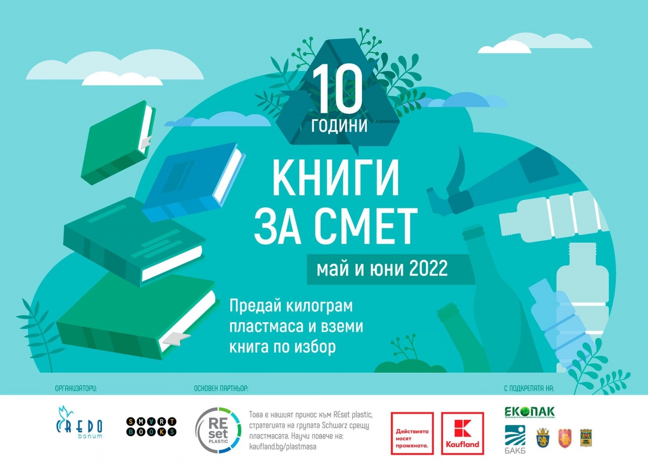С национално турне в 15 града една от най-мащабните екологични инициативи у нас, която поощрява едновременно рециклирането и четенето – "Книги за смет", ще отбележи 10 години от своето първо издание. За пореден път Kaufland България е основен партньор на "Книги за смет" и ще бъде домакин на инициативата в рамките на няколко уикенда през май, юни и септември.