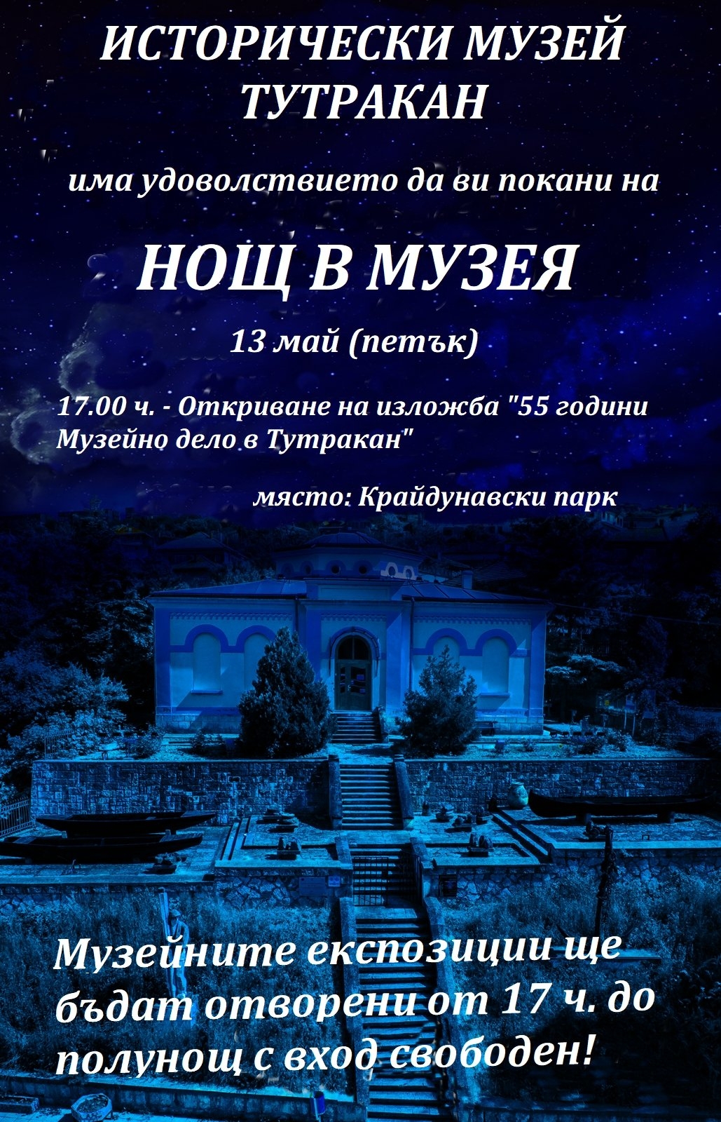 Исторически музей-Тутракан се включва в европейската инициативата Нощ в музея, която предоставя възможност на по-широка аудитория да се докосне до експонатите и творбите в музея и галерията, както и до техните послания.