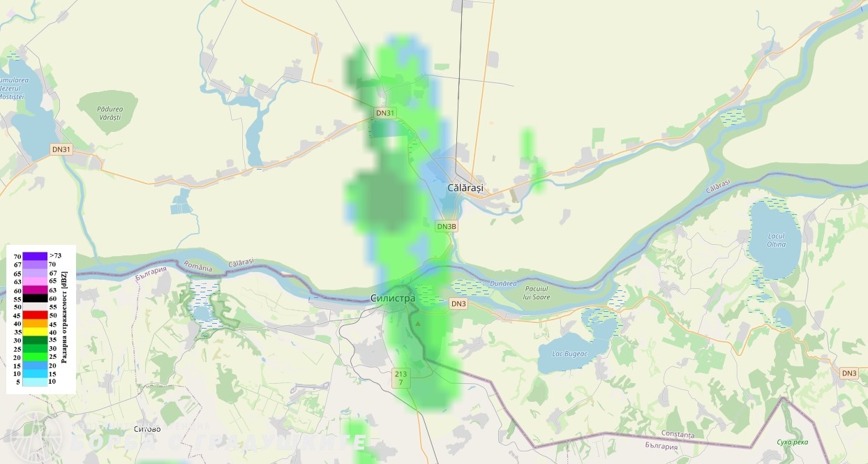 Гръмотевична буря с краткотрайни валежи се е разразила в момента над Силистра и Кълъраш.