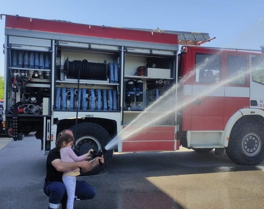Децата видяха отблизо оборудването на пожарните коли и специалната екипировка на пожарникарите. Служителите разиграха ситуации от тяхното професионално ежедневие, а малките многознайчета за миг влязоха в ролята на пожарникари.