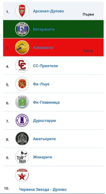 Шампиони на лигата станаха Арсенал-Дулово, следвани от Ветераните и Алпинистите.