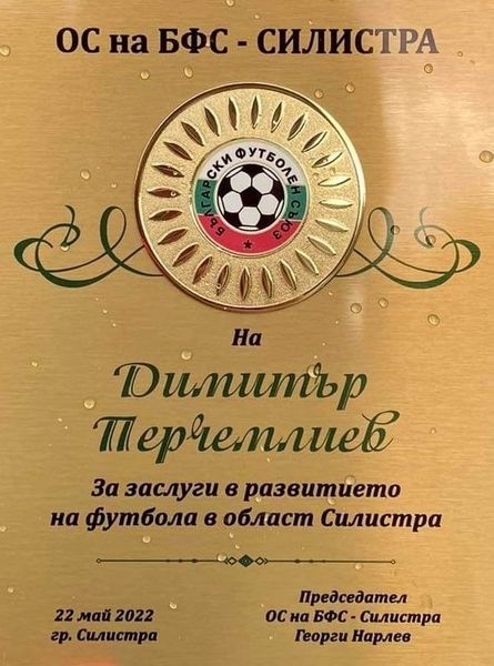 Председателят на Областен съвет на БФС за област Силистра Георги Нарлев награди с плакет за заслуги за развитието на футбола в Крайдунавска Добруджа дългогодишния играч на ФК "Доростол" Димитър Перчемлиев, който напоследък бе част от ФК "Спортист" - Кайнарджа, във връзка с приключване на футболната му кариера, продължила няколко десетилетия.