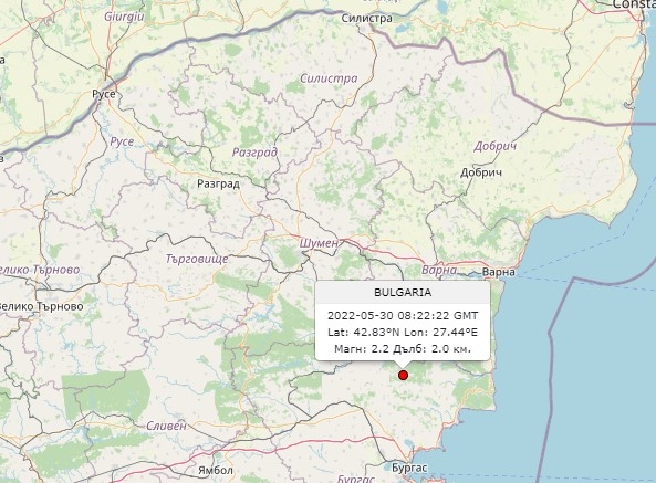 Слабо земетресение с магнитуд 2,2 по Рихтер е регистрирано край Айтос. Това сочи справка на сайта на Европейския сеизмологичен център.