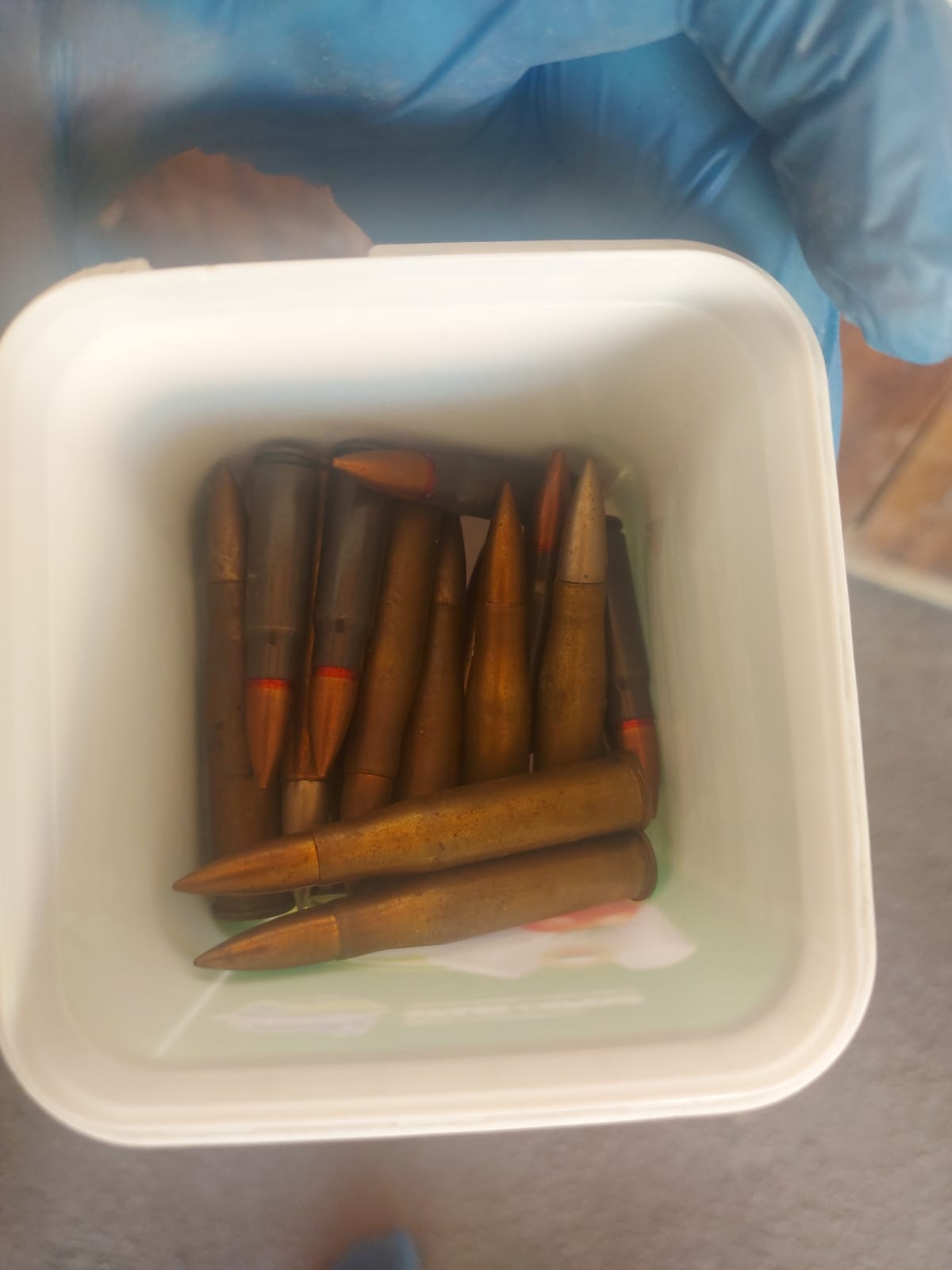 В имота граничните полицаи открили боен автомат "Калашников" 7.62 мм, със сгъваем приклад и боеприпаси за него. Намерени са и 21 ловни патрона и 2 патрона за малокалибрено оръжие. Мъжът не е притежавал разрешително за притежание и съхранение на оръжието и боеприпасите.