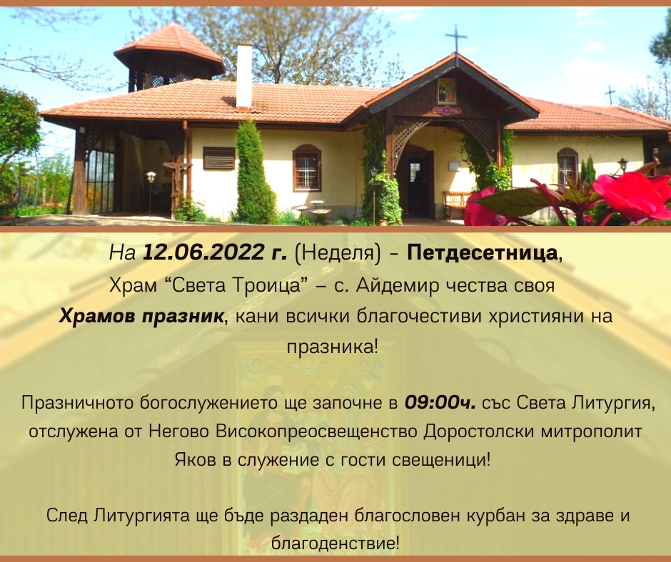 В неделя на 12 юни църквата "Света Троица" в силистренското село Айдемир ще отбележи 188 години от освещаването си. Тя е не само най-старата в областта, но и сред малкото у нас, издигнати от руски войници.