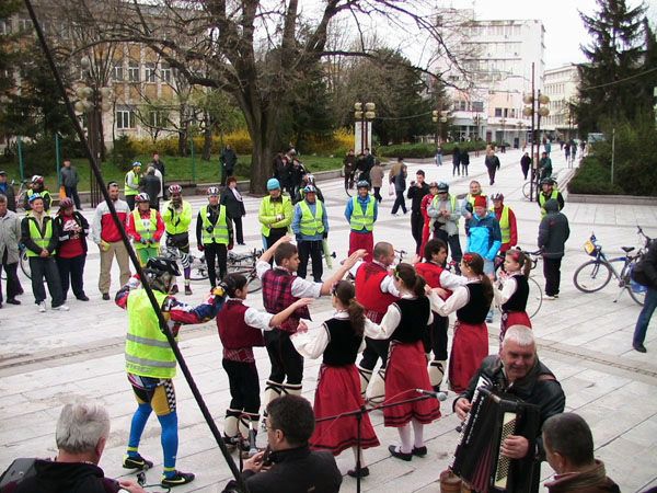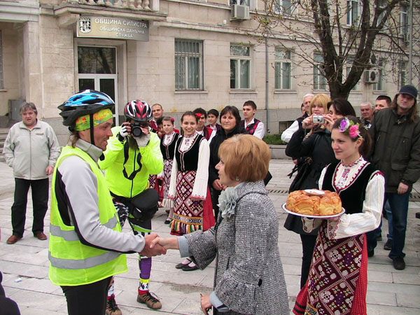 Националният благотворителен веломаратон пристигна тази вечер в Силистра. Около 20-тина ентусиасти пристигнаха в центъра на града около 17.40 часа, екипирани за лошото време. По стара добруджанска традиция, те бяха посрещнати с хляб и сол и кръшно добруджанско хоро. Зам.-кметът на Силистра Нели Стоилова поздрави участниците във велопохода. Веломаратонът започна на 2 април в София и и ще приключи на 4 май, като общата му дължина е 2500 км. Целта на обиколката е да се популяризира каузата "Безопасно колоездене", а хората, които участват в него са любители. Утре участниците продължават към Добрич.