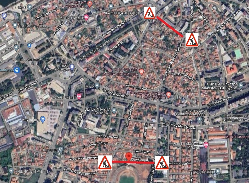 Със Заповед на кмета на община Силистра № ЗК-1325/ 22.08.22 г. считано от 22.08.2022 г. ще бъдат затворени за движение на моторни превозни средства следните участъци от уличната мрежа в урбанизираната територия на град Силистра:
