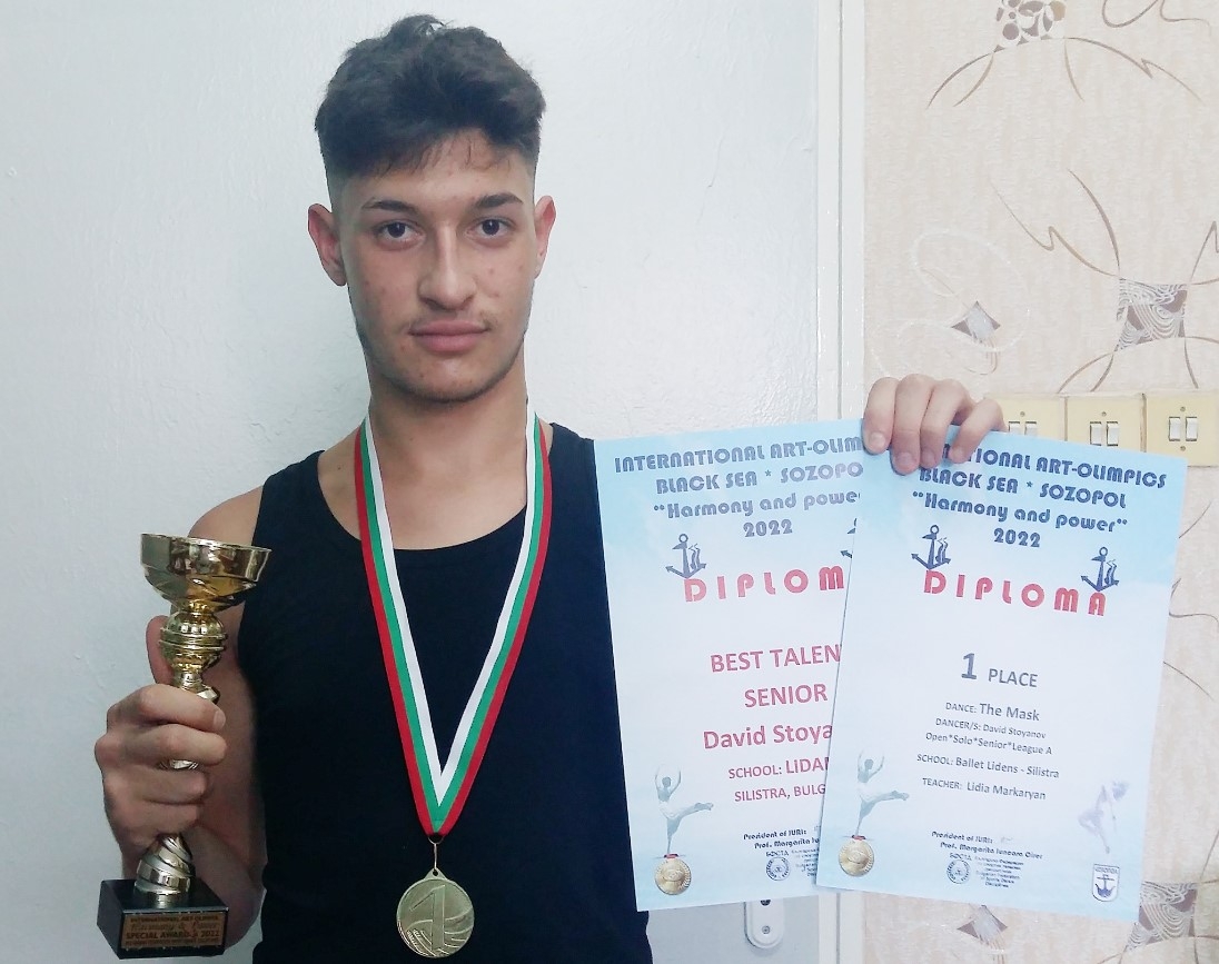 Давид Стоянов, като част от балет "Лиденс", е с първо място за солово изпълнение и с награда "Най-добър талант". Той е на 17 години и е ученик от 11 клас на ПГСУАУ "Атанас Буров" в Силистра.