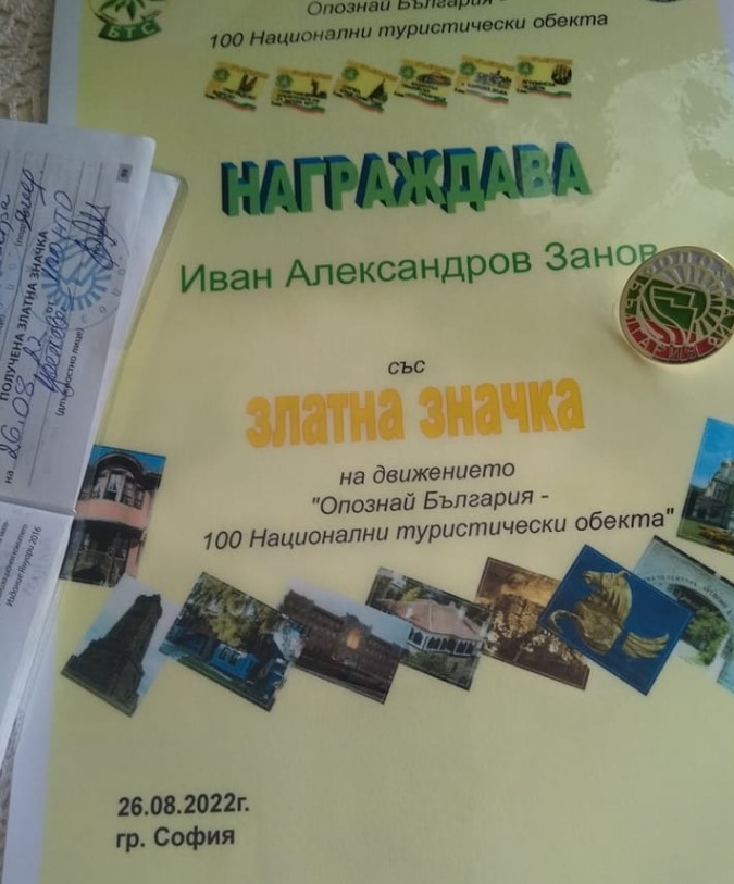 Иван Занов от Силистра заслужи "Златна значка" от Движението "100 национални туристически обекта"