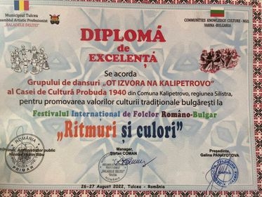 Танцов състав "От извора на Калипетрово" към НЧ "Пробуда-1940" с. Калипетрово взе участие във втория поред Румънско-Български фолклорен фестивал "Цветове и Ритми", който се проведе на 26-28 август 2022г. в Тулча, Румъния.