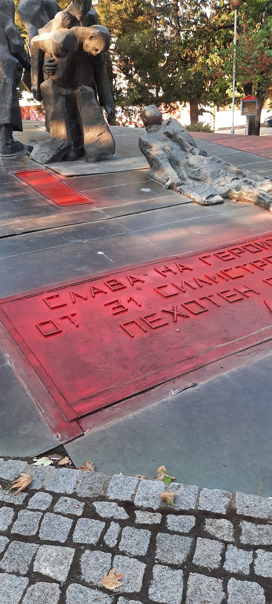 Заловиха вандала оцветил в червено паметника в Силистра, посветен на героии от войната