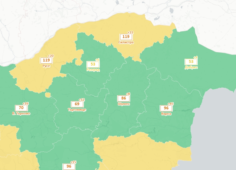 Силистра и Русе се изравниха по нива на заболеваемост от ковид, след като и двете области достигнаха показателя 119 новозаразени на 100 000 души население.