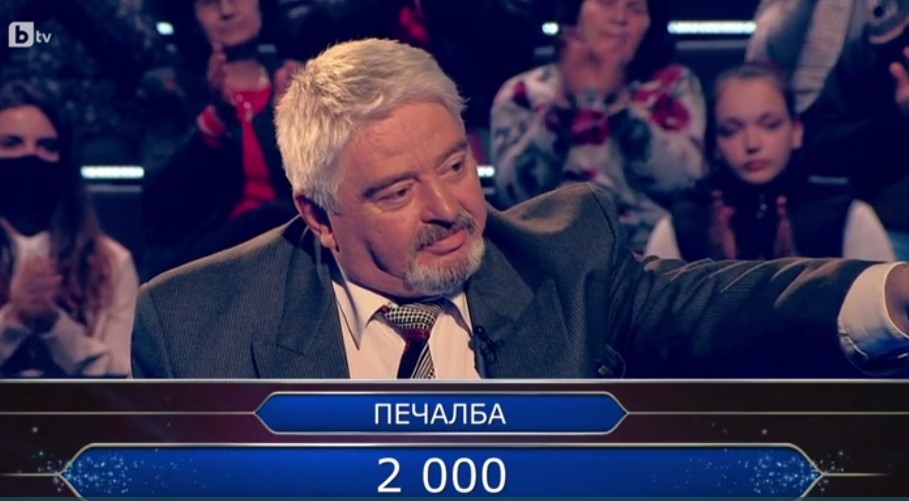 На въпрос за 1000 лв. той ползва първия си жокер "Помощ от публиката" на въпроса за аромата на ликьор Амарето. На въпрос за 2000 лв. той ползва втория жокер "50/50" и се отказа на въпрос за 3000 лв., след като ползва "Помощ от приятел", но дъщеря му Глория Недева не успя да му помогне и той се отказа, и така си тръгна от играта с 2000 лв.