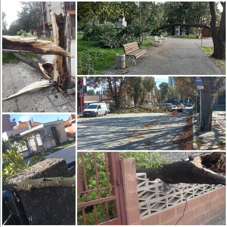 Дървета и големи клони паднаха в Дунавската градина, на бул. "Македония", на улица "Петър Мутафчиев" и още няколко места в града.