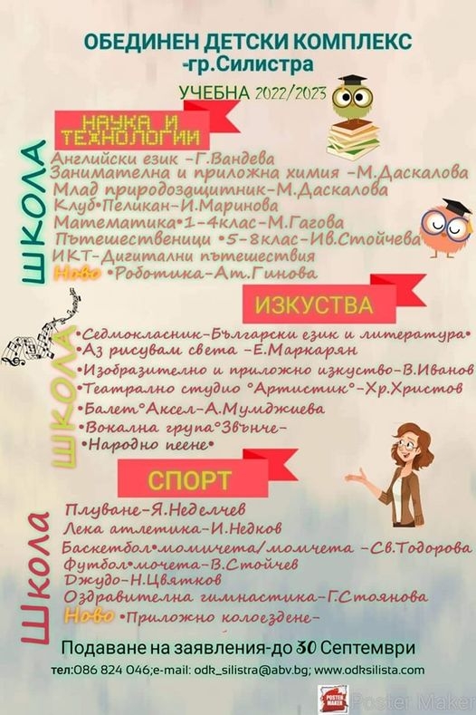 На 30.09.2022 г. изтича срока за подаване на заявления за групите на Обединен детски комплекс в Силистра.