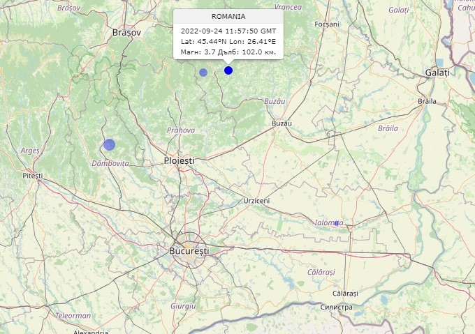 Трусът е с дълбочина 128 км на 45.55 северна ширина и 26.53 източна дължина.