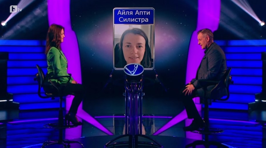 Анна поиска "жокер" "Помощ от приятел" на въпрос за 1500 лв. Един от тримата приятели, избран да помага, бе силистренската счетоводителка Айля Апти. Тя посочи верния отговор (А) много бързо, цели 10 сек преди да изтече времето.