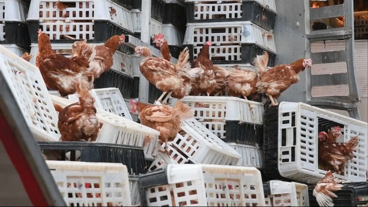 Пиян шофьор обърна камион с птици на пътя Разград - Силистра