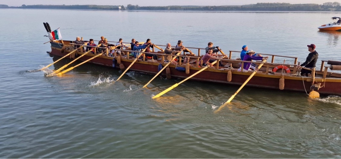 Гребците са тръгнали тази сутрин от Тутракан, облечени в легионерски дрехи, точно копие на облекло датиращо от историческия период.