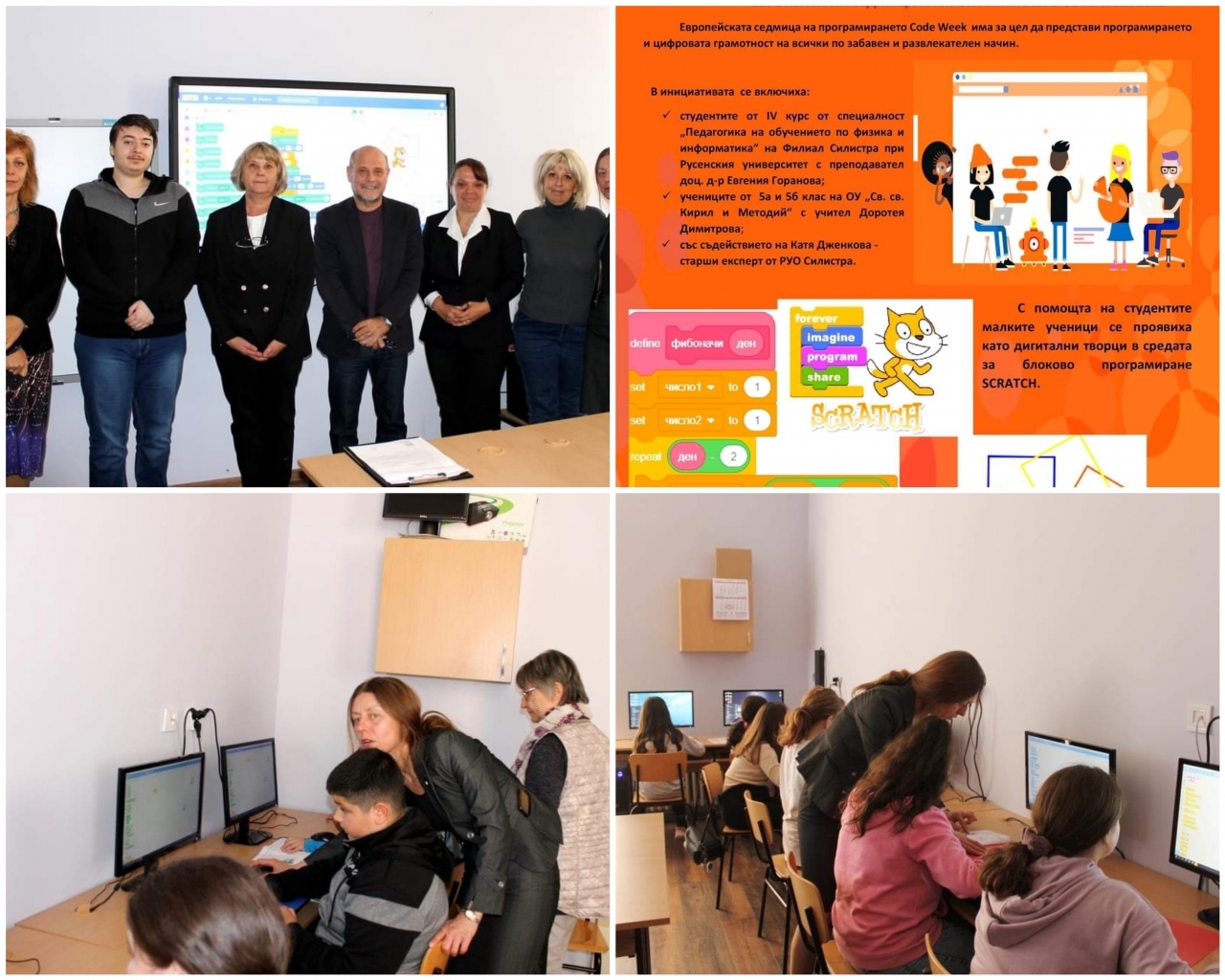 През месец октомври 2022 година учениците от петите класове на ОУ "Св. Св. Кирил и Методий", гр. Силистра и студенти от четвърти курс, специалност "Педагогика на обучението по физика и информатика" към Филиал – Силистра на РУ "Ангел Кънчев" заедно със своя преподавател доц. д-р Евгения Горанова се включиха в Европейската седмица на програмирането.