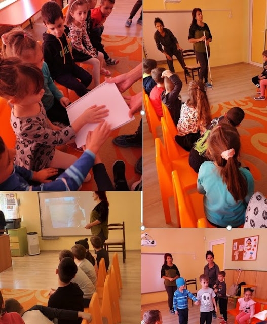 Предоставихме възможност на всяко от децата да прокара пръстчета по релефните точки на Брайловото писмо, с което пишат слепите хора. Дойде ред и за запознаване за работа със съвременни технологии за общуване на незрящите. Малчуганите вкупом се спуснаха към мен, когато изкарах телефона си да видят как работя с "говореща програма". Срещата с малките любопитковци ми донесе удовлетворение и радост, сподели Георгиева.