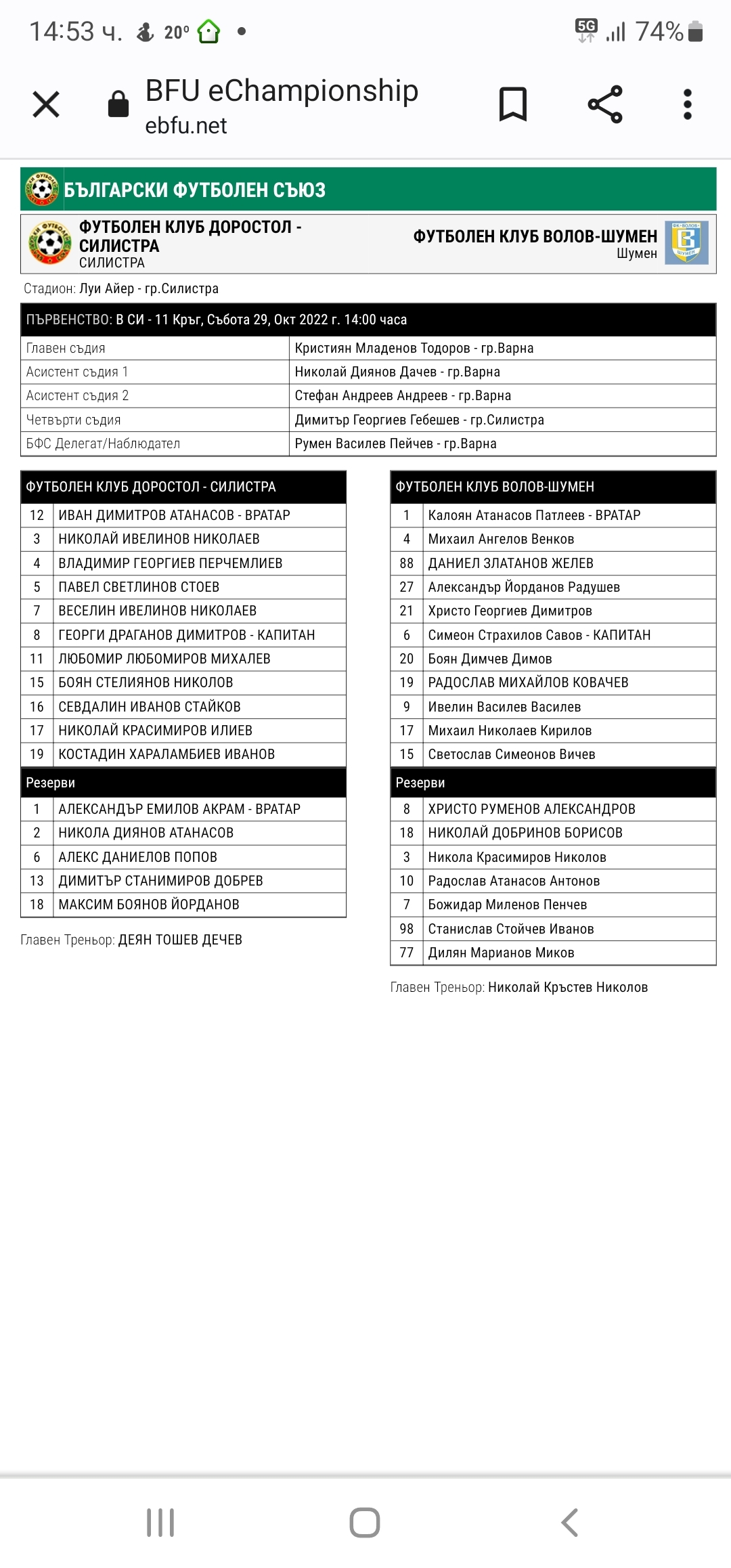 Първата опасна ситуация пред вратата на Доростол дойде в 18-та минута, когато Светлозах Вичев от Волов бе изведен с далечен пас един на един срещу вратаря на домакините Иван Атанасов, но топката срещна страничната греда на вратата на силистренци.