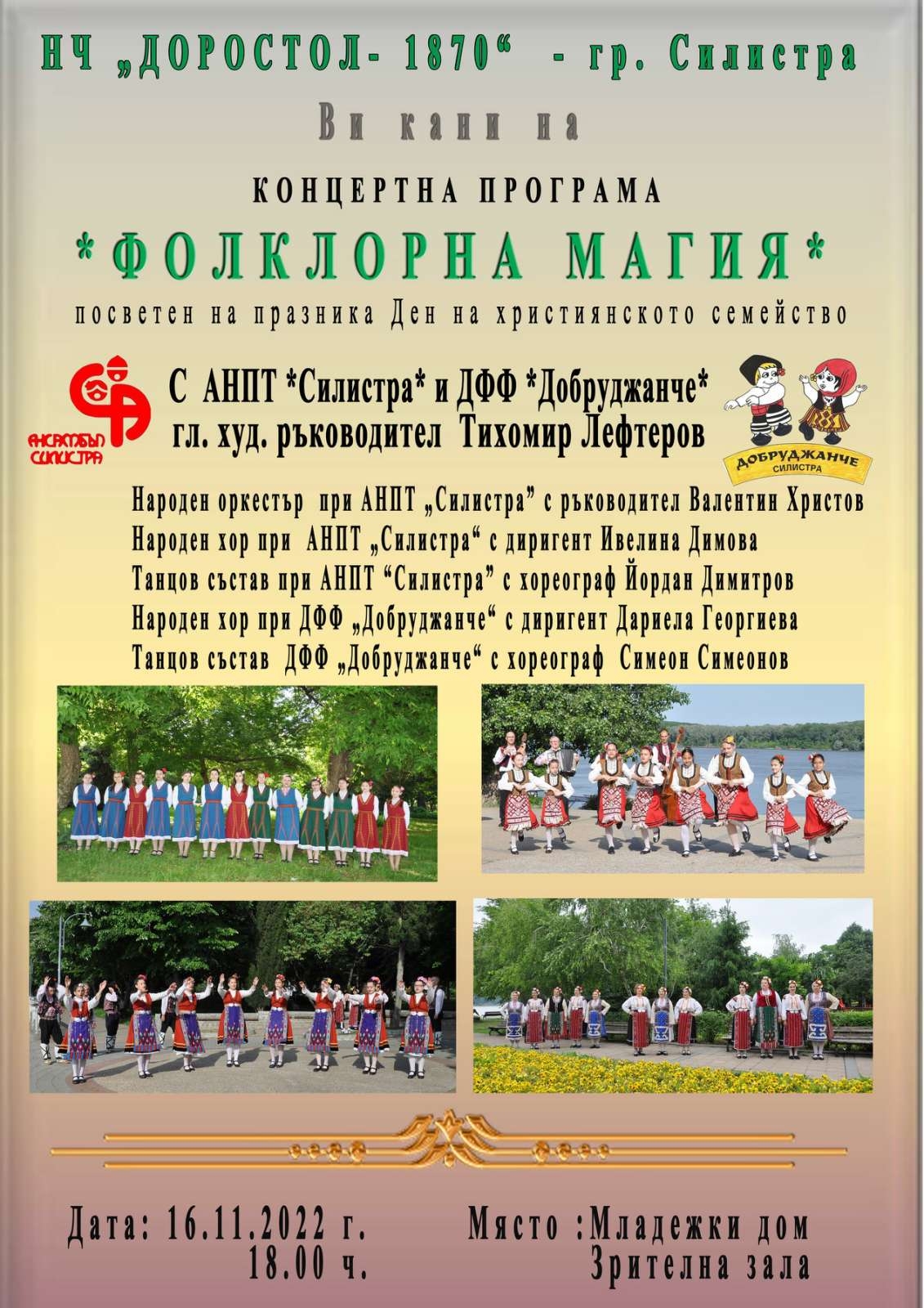 "Фолклорна магия" – концерт на изявени фолклорни състави от Силистра ще проведе утре.