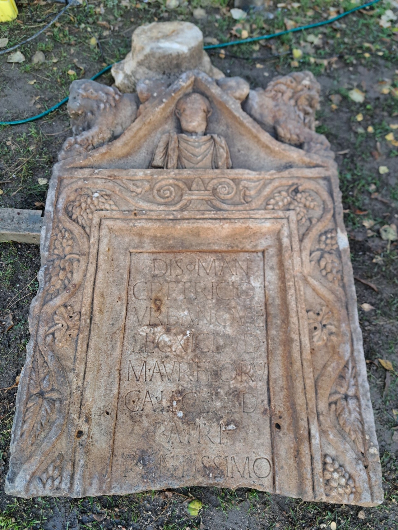 Започват действия по отделянето, извеждането от изкопа и транспортирането му до археологическия музей, където става ясно, че това е надгробна плоча принадлежаща вероятно на римски аристократ, свързан с 11-ти Клавдиев легион.