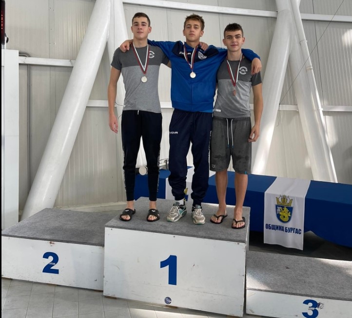 Христо Струмски, с треньор Христо Бончев, ученик от 8 клас при Спортно училище "Дръстър" - Силистра завоюва 2 златни медала на 50 м. кроул и 100 м. бруст след безапелационното плуване.